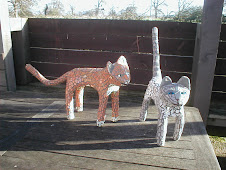 Boris is still away so he asked me to pass on the week's news. He did a pretty good job but I think we cats have a better overview of the place. As you can see from our picture we are shy and retiring creatures, it's a good cover to keep, so no-one suspects us when there have been overnight visitors in the pantry, mind you whoever invented cling film has a lot to answer for.